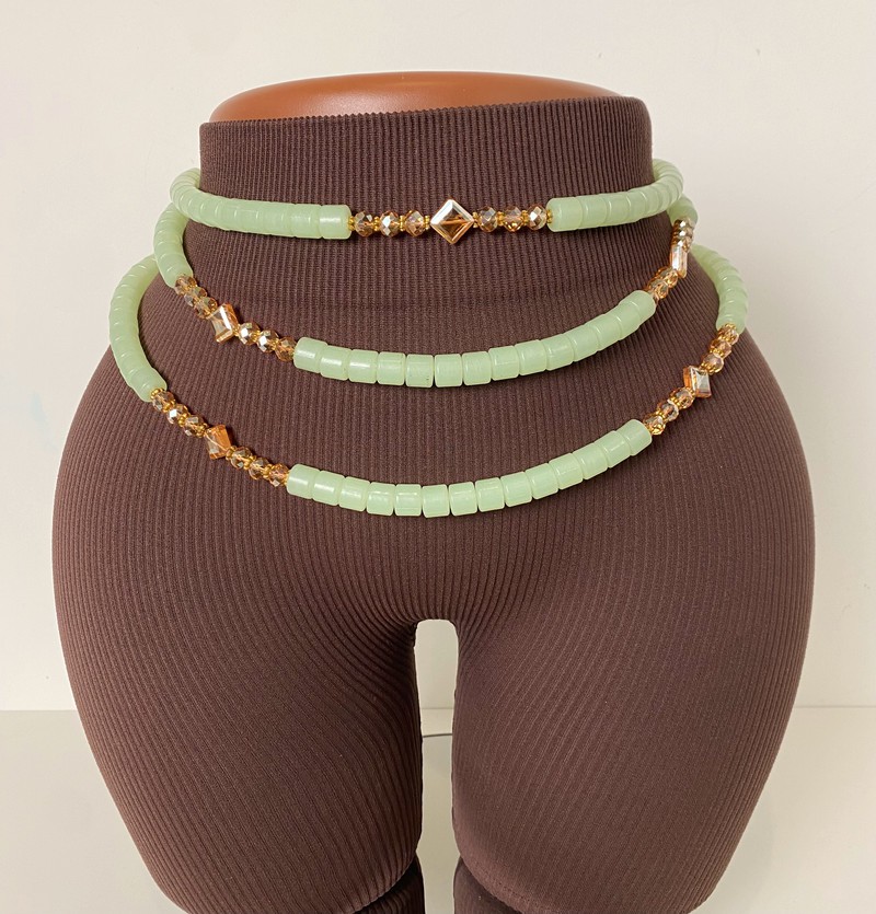 Ajoutez une touche de lumière et d’originalité à votre silhouette grâce à notre baya fluorescent, une version éclatante de nos perles de hanche traditionnelles. Confectionnée avec des perles lumineuses qui brillent dans l’obscurité ou sous lumière UV, elle allie sensualité, confort et audace. Montée sur un fil transparent et étirable, elle s’adapte parfaitement à votre taille tout en restant légère et agréable à porter.