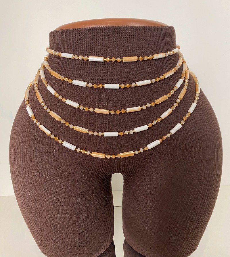 Laissez-vous séduire par nos sublimes bayas, aussi connues sous le nom de perles de taille ou perles de hanches. Conçues avec précision et amour, elles épousent les courbes du corps grâce à leur fil invisible et extensible, assurant une sensation de légèreté et de confort du matin au soir. Chaque baya est fabriquée avec des perles soigneusement sélectionnées pour leur brillance exceptionnelle et leur longévité.