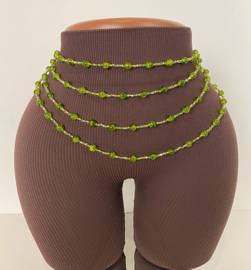Sublimez vos courbes avec notre baya artisanale, également appelée perle de taille ou bijou de hanche. Fabriquée à la main avec des perles décoratives montées sur un fil transparent et extensible, elle allie confort, élégance et tradition.