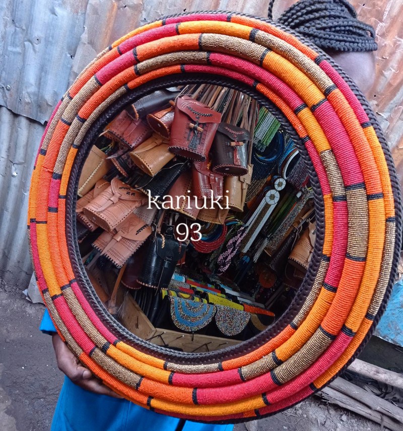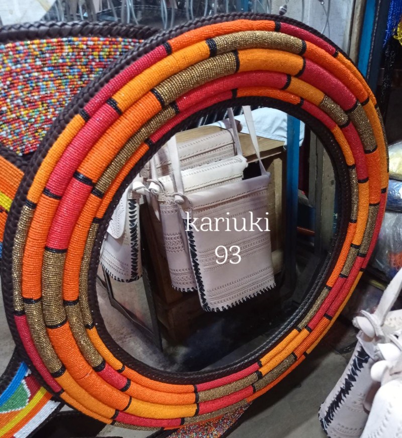 This wall beaded mirror decor is made of fine beads,mirror piece and pure leather.