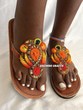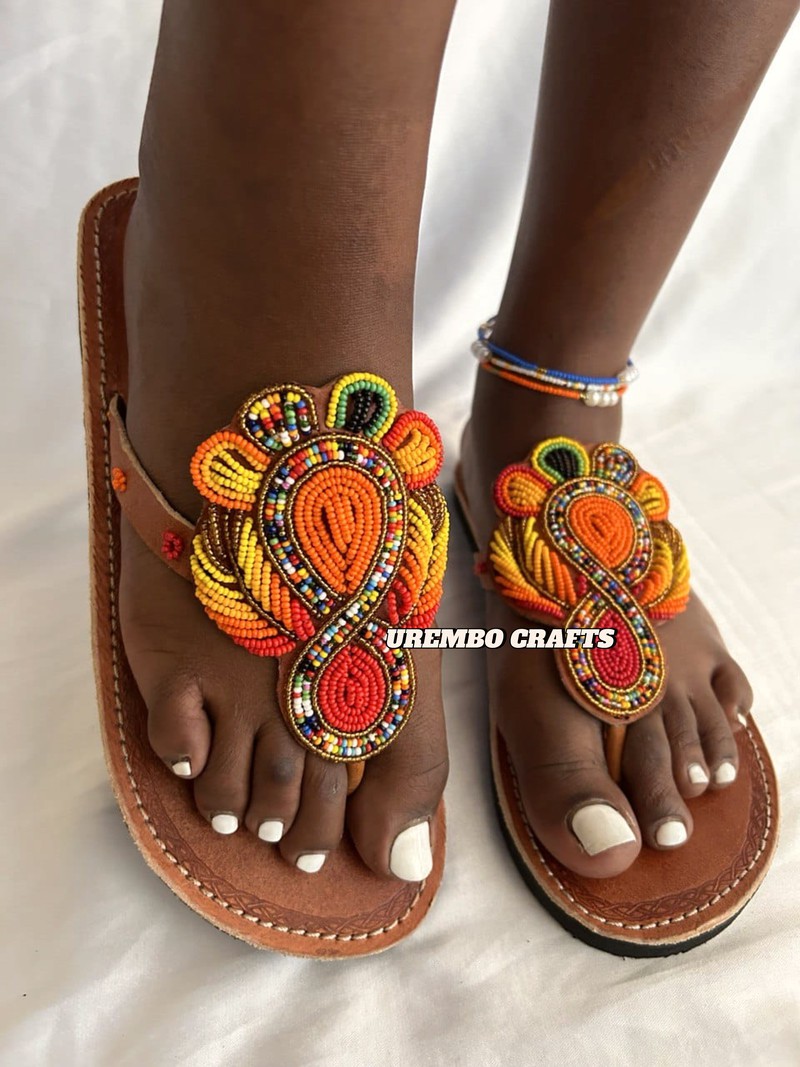 Each pair is made using high-quality, durable leather for long-lasting comfort and support. The intricate beadwork is carefully hand-stitched to ensure uniqueness and attention to detail, making every sandal one of a kind.