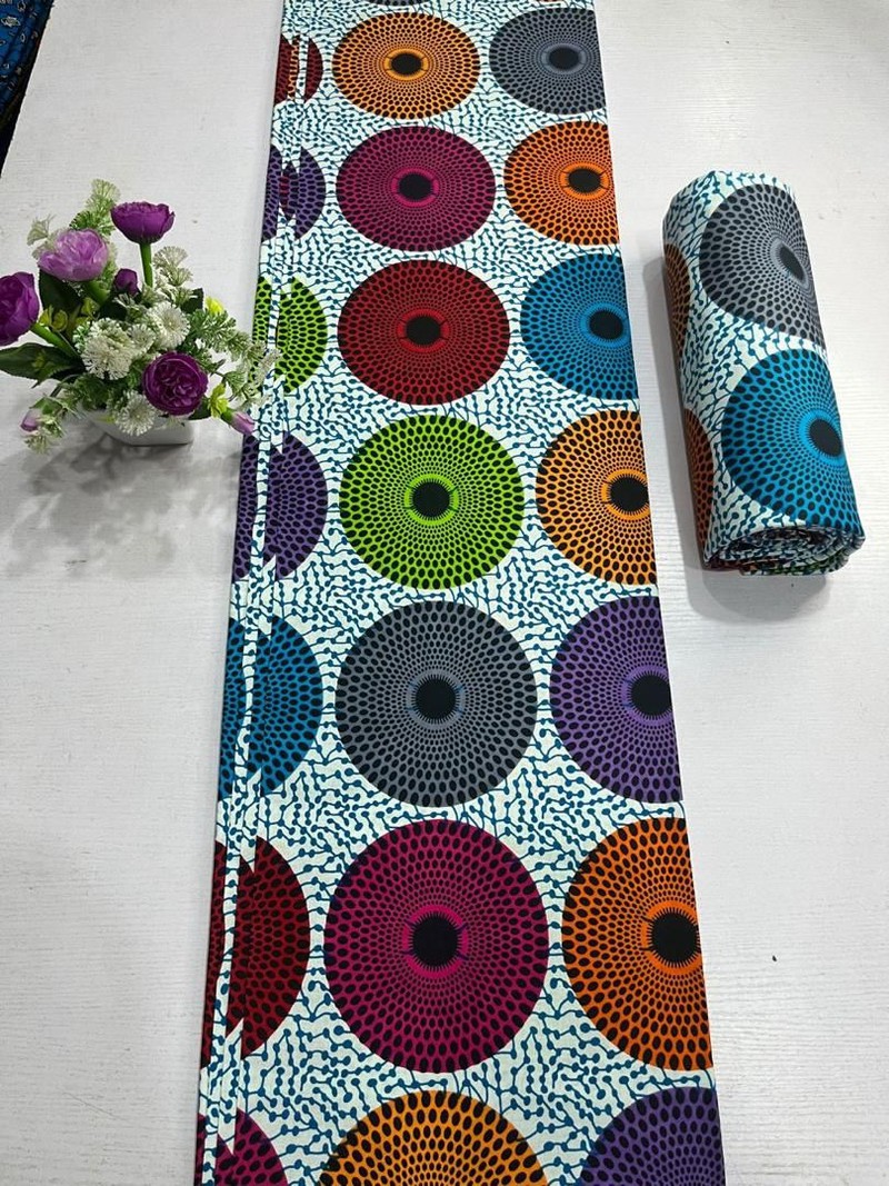This Beautiful African Wax Print Ankara Fabric is 100% Cotton 6 yards 45 inches wide/ 5.486 metres long and 1.143 metres wide in one piece