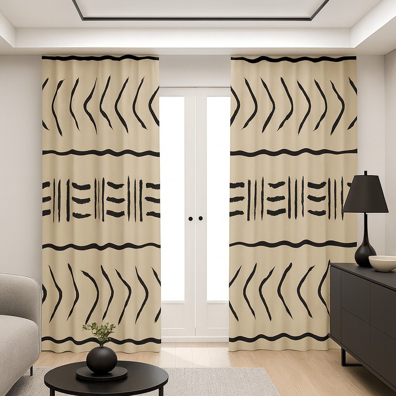 Elevate your space with our Beige Off White Blackout Curtain African Print (Two-Piece)! Enjoy the bold, adventurous vibe of African prints while blocking out harsh sunlight. Take a risk and add a touch of adventure to your home decor. Don't miss out on these unique, eye-catching curtains!