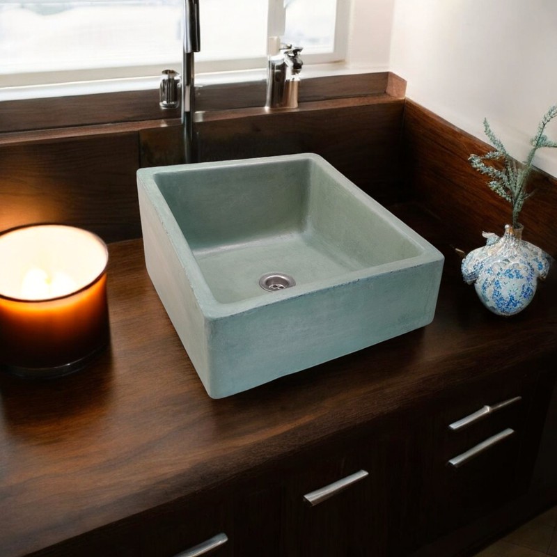 Crafted from high-quality concrete, this sink has a distinct texture that brings warmth and natural beauty to your space. Each piece is individually handcrafted, resulting in subtle variations in surface patterns and tones, making every sink one-of-a-kind. Its sturdy, durable material ensures long-lasting use, while the smooth finish on the inside adds a refined touch. This sink's combination of raw concrete with its clean, angular lines creates a striking yet functional centerpiece for any bathroom, powder room, or kitchen, blending effortlessly with a range of interior styles—from industrial chic to modern minimalism.