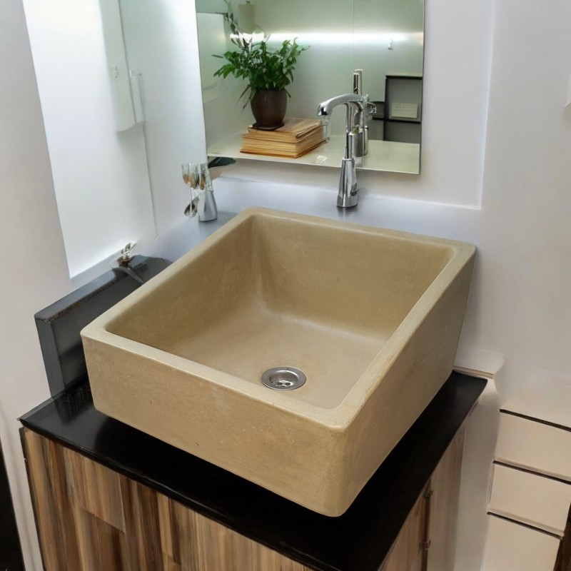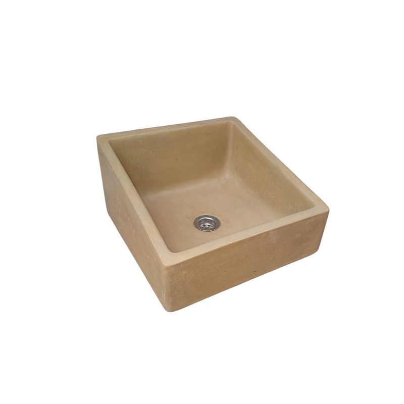 Crafted from high-quality concrete, this sink has a distinct texture that brings warmth and natural beauty to your space. Each piece is individually handcrafted, resulting in subtle variations in surface patterns and tones, making every sink one-of-a-kind. Its sturdy, durable material ensures long-lasting use, while the smooth finish on the inside adds a refined touch. This sink's combination of raw concrete with its clean, angular lines creates a striking yet functional centerpiece for any bathroom, powder room, or kitchen, blending effortlessly with a range of interior styles—from industrial chic to modern minimalism.