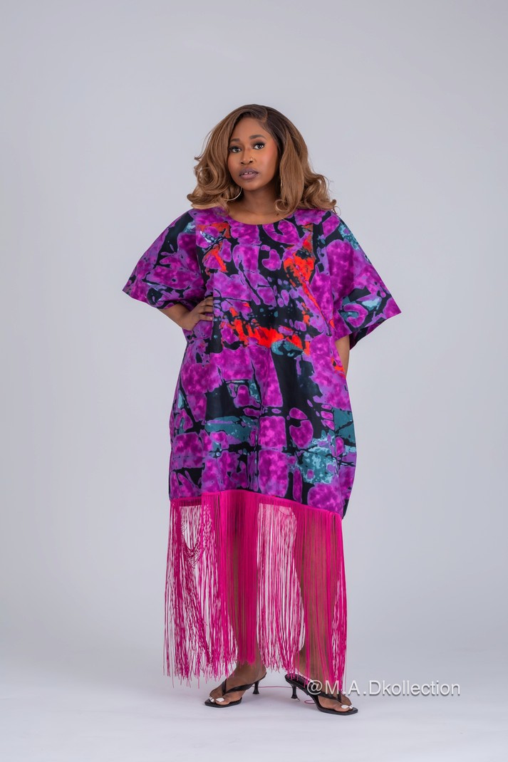 Our Stunning Bibi Ankara Midi fringe dress in this Beautiful African print is trendy and perfect for the sophisticated look.