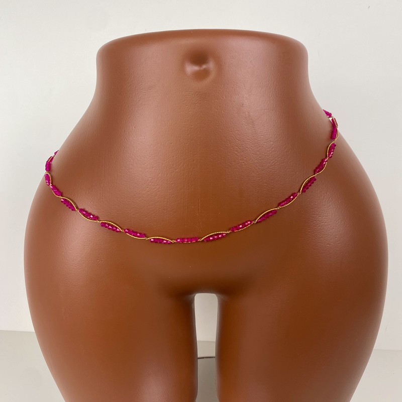 Sublimez vos courbes avec notre baya artisanale, également appelée perle de taille ou bijou de hanche. Fabriquée à la main avec des perles décoratives montées sur un fil transparent et extensible, elle allie confort, élégance et tradition.
