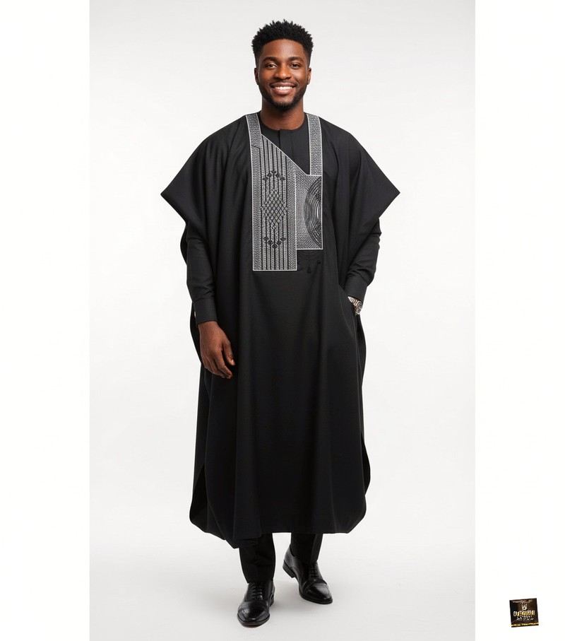 Make a bold statement with this luxury Black agbada set, a perfect blend of tradition and modern sophistication. Expertly tailored from premium quality fabric, this three-piece outfit includes a long embroidered agbada robe, a matching inner top, and well-fitted trousers. The detailed embroidery adds a regal touch, making it ideal for weddings, traditional ceremonies, and special occasions. This outfit represents the essence of African men's fashion, offering both elegance and comfort for the stylish gentleman. Premium-quality, breathable fabric Exquisite embroidery detailing Comfortable tailored fit Suitable for weddings, engagements, and cultural events Style Tip: Complete the look with loafers or leather sandals and a matching cap for a royal appearance.
