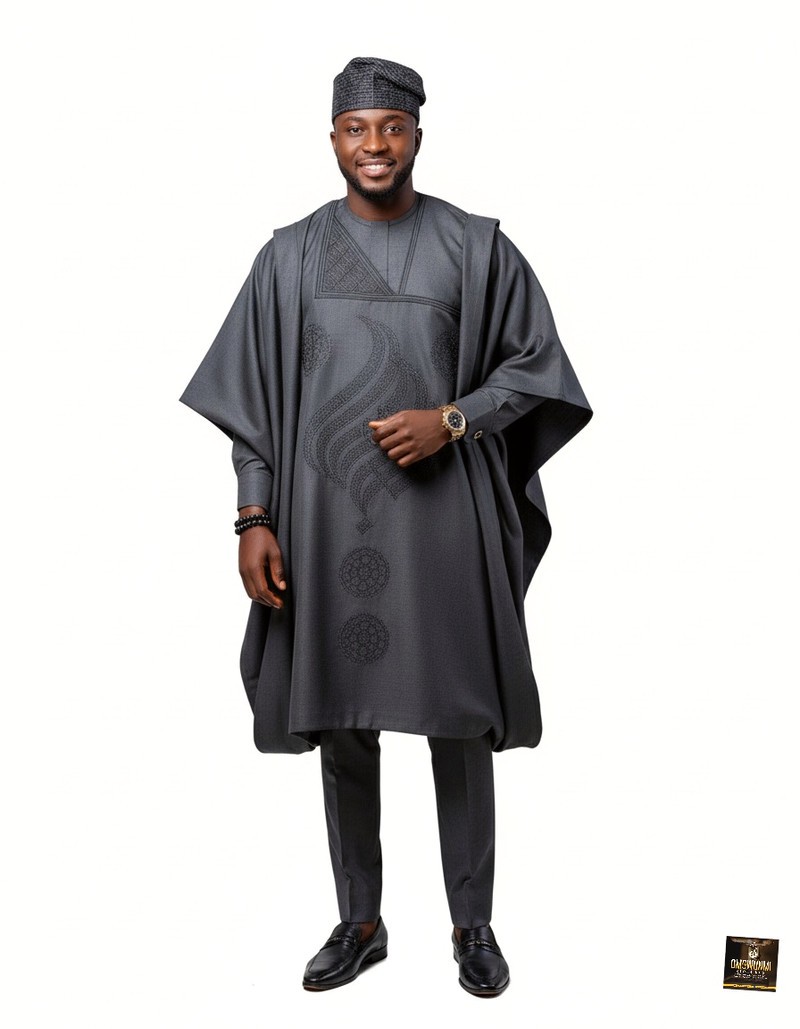 Make a bold statement with this luxury black agbada set, a perfect blend of tradition and modern sophistication. Expertly tailored from premium quality fabric, this three-piece outfit includes a long embroidered agbada robe, a matching inner top, and well-fitted trousers. The detailed embroidery adds a regal touch, making it ideal for weddings, traditional ceremonies, and special occasions. This outfit represents the essence of African men's fashion, offering both elegance and comfort for the stylish gentleman. Premium-quality, breathable fabric Exquisite embroidery detailing Comfortable tailored fit Suitable for weddings, engagements, and cultural events Style Tip: Complete the look with loafers or leather sandals and a matching cap for a royal appearance.