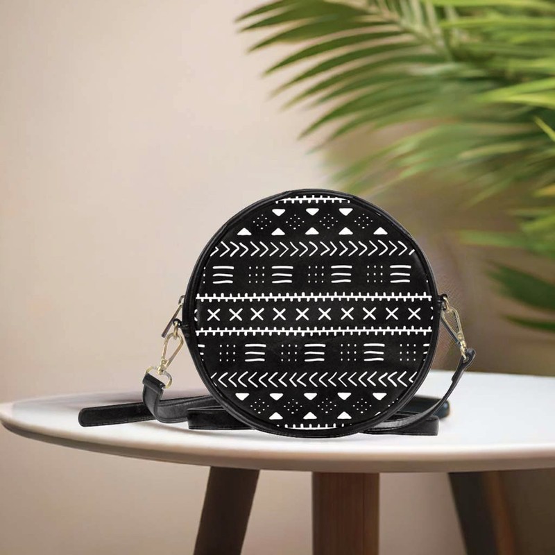 Indulge in a touch of culture and style with our Black and White African Leather Bag Round Sling. Made from premium leather, this versatile bag boasts a unique design and durable construction. Perfect for any occasion, it's your go-to accessory for adding a touch of sophistication and flair to any outfit. Product Description * 8.22 Oz. Made from high-grade PU leather. * Single zippered round closure. * One main compartment, big enough to pack cosmetic, sunglasses, Phone and etc. *Adjustable PU leather shoulder strap for easy and comfortable carrying. * Dimensions: 8.07"(L) x 2.07"(W) x 8.07"(H). Delivery Time This item will be processed within 3-7 business days (Excluding Weekends and Holidays). Once products ships it can take up to 15 Business days depending on your location. Out of Stock items can be requested by emailing us at [email protected] Care Instructions Machine wash cold inside out. Gentle cycle with mild detergent and like colors. Do not use bleach or fabric softener. Do not tumble dry to ensure maximum shelf life.