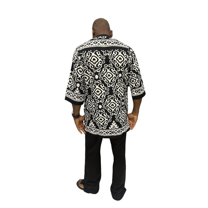 Black and White Ankara Cotton Shirt Fashionable Shirt to stand out at every Occasion Perfect for any casual outing Its edgy, Its different, Its unique Fabric: Cotton and Ankara Fabric care: Machine wash Cold Produced in a pest, smoke & dust free environment. Please note that measurements in the size guide are general and a custom order can be made by sending the following measurements: • Chest (Around the chest under the armpit. Should be as free as you want it) • Shirt length (From the shoulder bone downwards as long as preferred) • Shoulder or back width (from one shoulder to the other shoulder) • Sleeves (from the shoulder bone down your arm as long as preferred) • Across Arm (Around your forearm) • Wrist Width (Around your wrist) • Waist (Around your waist just above your belt) • Pant length (From your belt down your legs as long as preferred) • Thigh Width (Around your thighs; should be free enough) • Inseam (From the juncture of your legs to your foot) • Ankle width (Around your ankles; should be free enough)