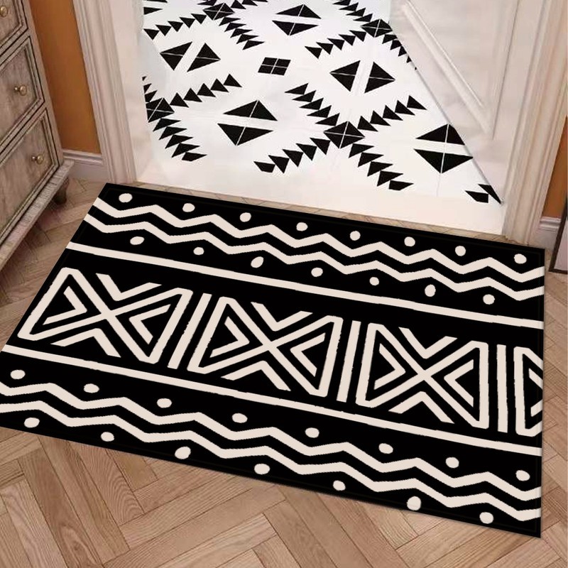 Transform your bathroom into a bold and daring space with our Black and White Bathroom Rug Mudcloth Rectangular Bath Mats. These striking mats add a touch of adventure and risk-taking to any room. The perfect way to upgrade your bath experience and add a pop of style!