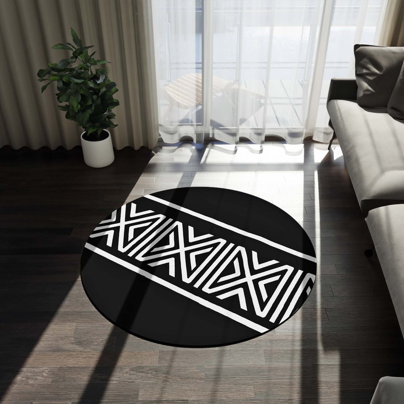 Transform your space with our daring Black and White Round Rug! Crafted with a tribal-inspired design, this bold circle rug adds a touch of adventure to any room. Elevate your style and take a risk with this statement piece. Product Description = Made of 100% Polyester = Non-slip backing. = Suitable Rooms: Home Office, Parlor, Bedroom = Stain resistant, easy to vacuum, and perfect for any room and decor. = Due to transportation needs, we will fold and curl the rugs and carpets, so there will be some creases on the products you receive. = RUG SIZE - L 23.6" x W 23.6" - (60cm x 60cm) Delivery Time This item will be processed within 7-15 business days (Excluding Weekends and Holidays). Once products ships it can take up to 15 Business days depending on your location. Out of Stock items can be requested by emailing us at [email protected]