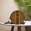 This sleek and stylish evening bag features a striking Kuba print and a versatile round sling design. Made of high-quality materials, it is perfect for a night out or a special occasion. Enhance any outfit with this statement piece.