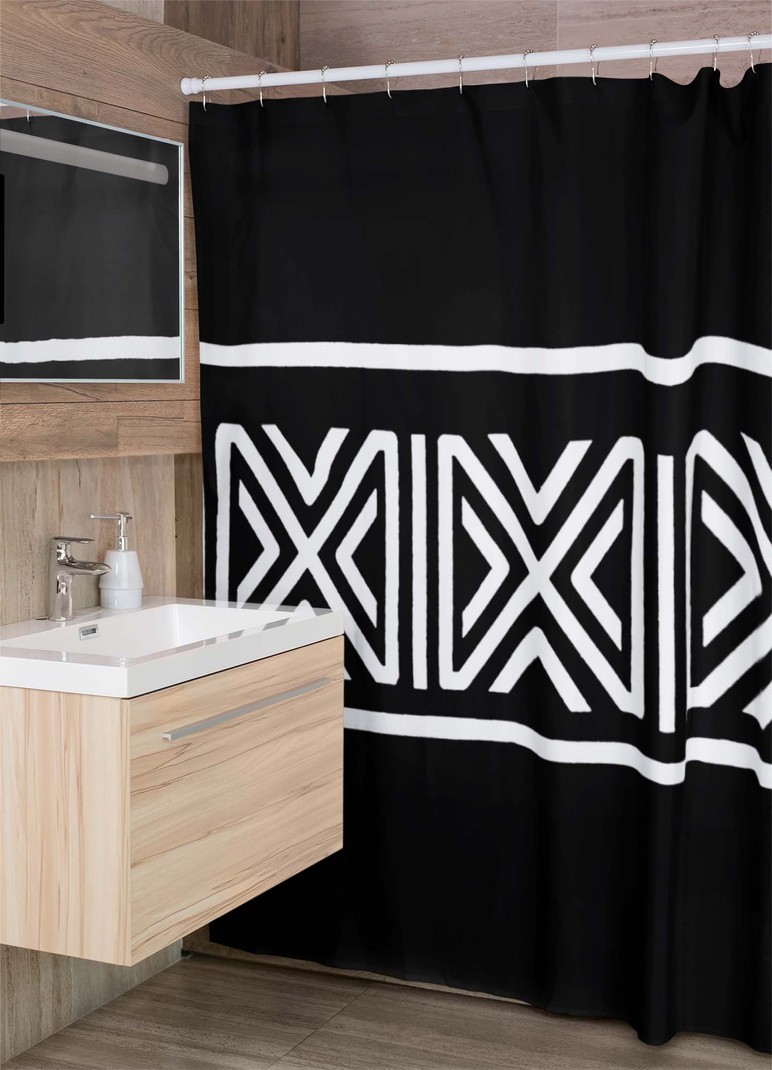 Elevate your bathroom decor with our bold Black Boho Shower Curtain! The zigzag print adds a touch of adventure and risk to your everyday routine. Make a statement and turn your bathroom into a daring and inspiring space. Perfect for the risk-taker in you!