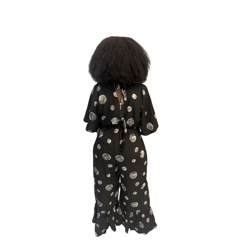 Black Wide Leg Jumpsuit with pleats Perfect for Casual or Formal wear Fabric: Cotton Fabric care: Dry Clean Or Handwash only Produced in a pest, smoke & dust free environment. Please note that measurements in the size guide are general and a custom order can be made by sending the following measurements: • Bust (Around the bust under the arm. Should be comfortably free) • Waist • Shoulder (from one shoulder bone across your nape to the other shoulder bone) • Hips (Around the widest part of your hip) • Length (From your shoulder as long as preferred)