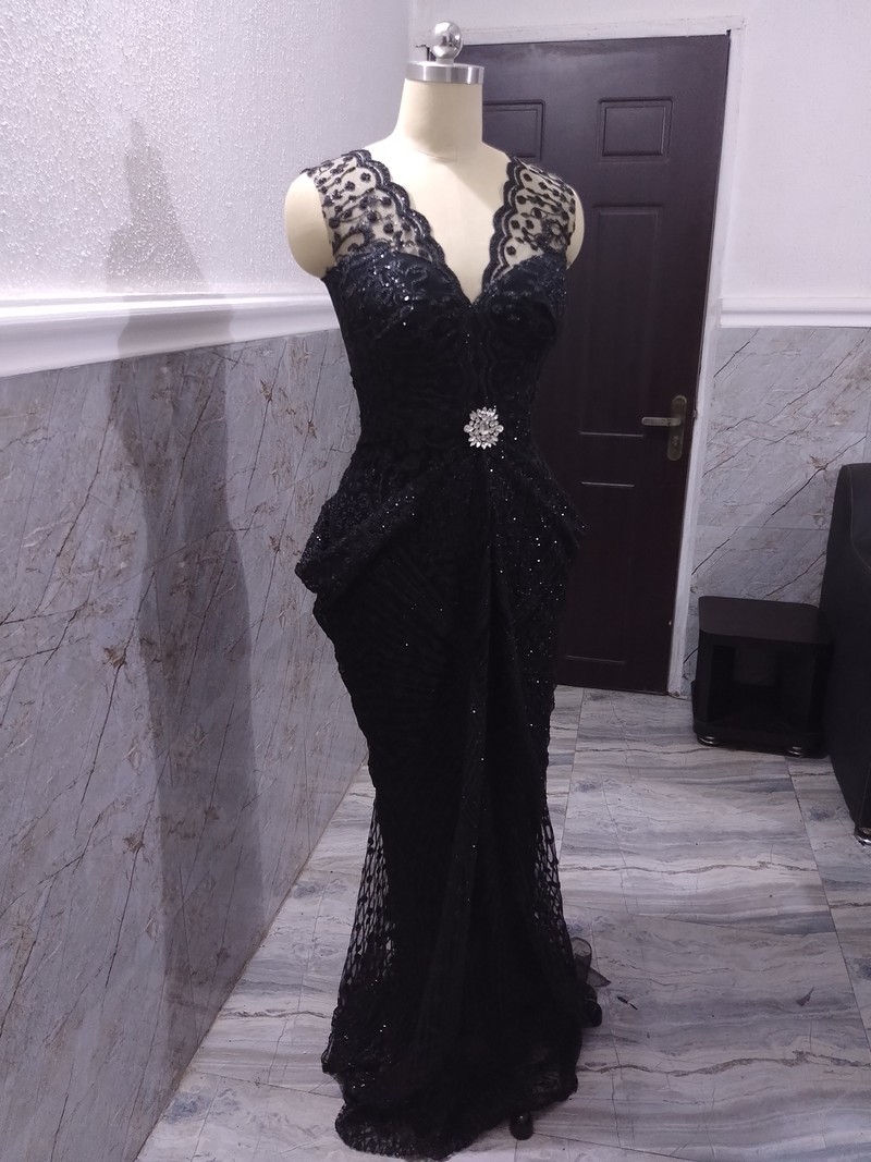 Black lace bodycon long dress