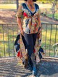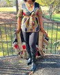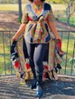 Black Multicolor Dashiki Print Ankara High Low Ruffle Peplum Blouse made with 100% cotton ankara fabric.