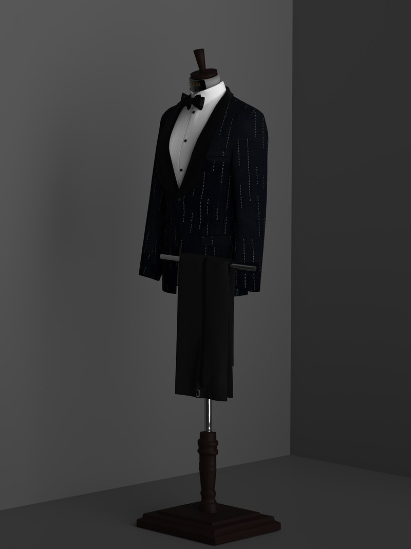 WHAT YOU GET: * Black Pattern-Stoned Jacquard Shawl Lapel Tuxedo JACKET * BLACK PANT * WHITE SHIRT * BOW TIE