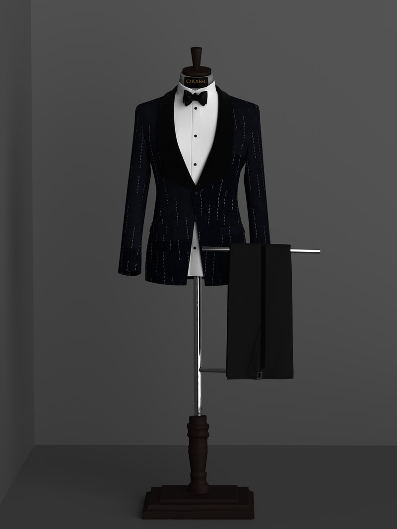 * Black Pattern-Stoned Jacquard Shawl Lapel Tuxedo JACKET