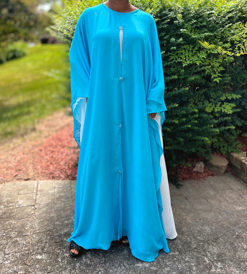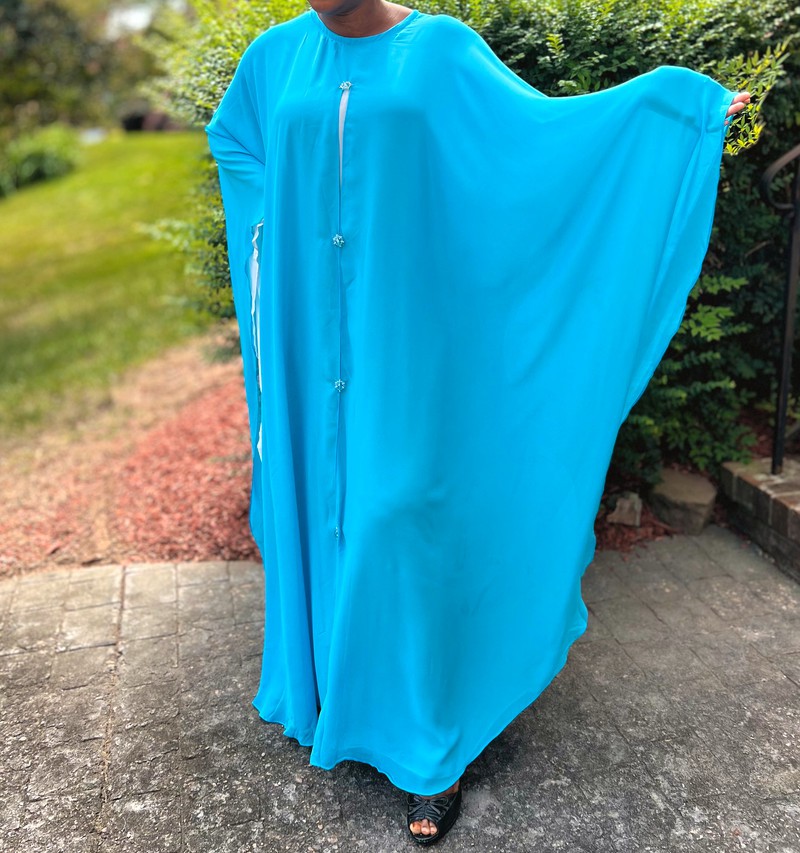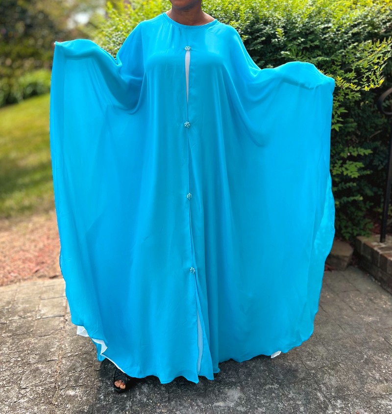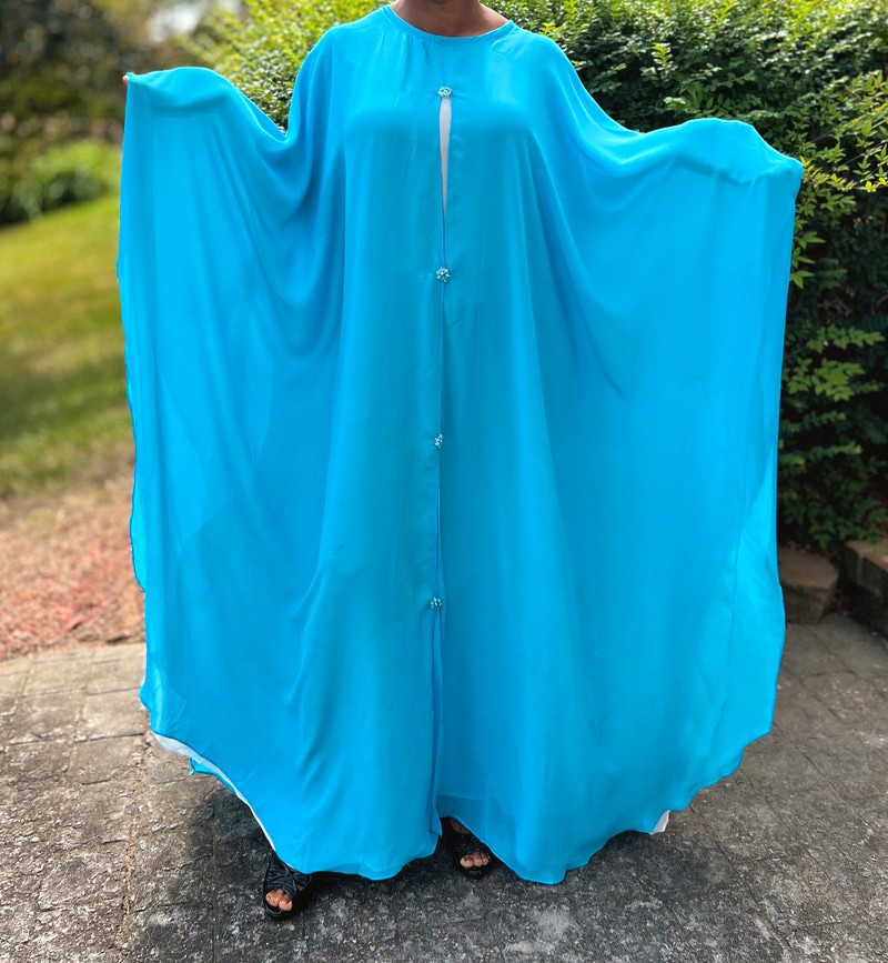 Light blue and white Two tone oversized Maxi kaftan dress Chiffon Great for any occasion