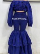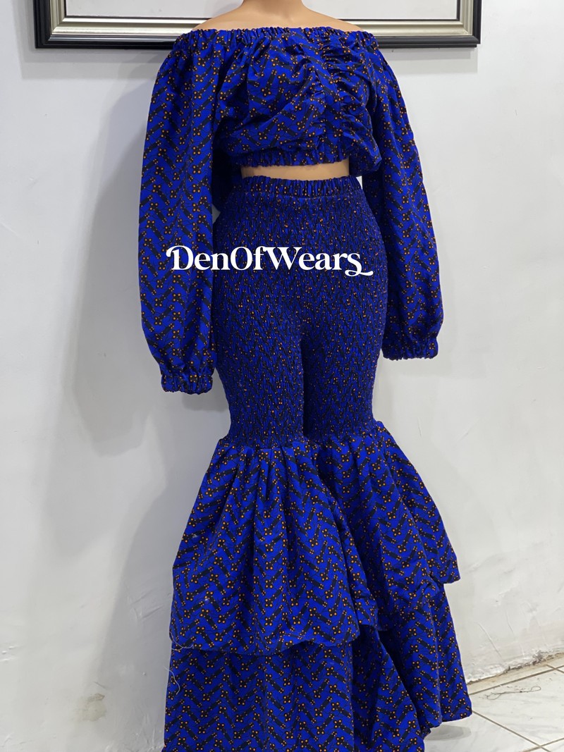 Pantalon et haut deux pièces bleu Ankara. Pantalon smocké avec crop top