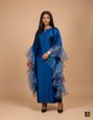 Order the room in this regal Blue Shift Dress. Crafted from lustrous satin-finish fabric, this piece is defined by its dramatic, architectural sleeves. Cascading layers of iridescent, sheer organza ruffles run down the sides, creating an ethereal "angel wing" effect. The loose, comfortable fit ensures you look effortlessly glamorous without compromising on comfort. Perfect For, High-tea events, wedding guests, or religious ceremonies. Material: Satin and sheer organza Color: blue