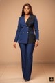 Redefine corporate wear with this avant garde two-tone suit. This architectural piece features a color-blocked blazer that seamlessly merges deep navy blue with jet black in a vertical split. The asymmetric waistline and pocket placement create a slimming optical illusion that elongates the torso. Finished with silver hardware and paired with matching navy trousers, this suit is for the woman who isn't afraid to break the mold. Best For: Fashion events industry, creative agency meetings, or a sophisticated dinner date, Keynote speaking engagements, launch parties, or executive board meetings where you need to command attention. Material: cotton/wool Color: Multicolor