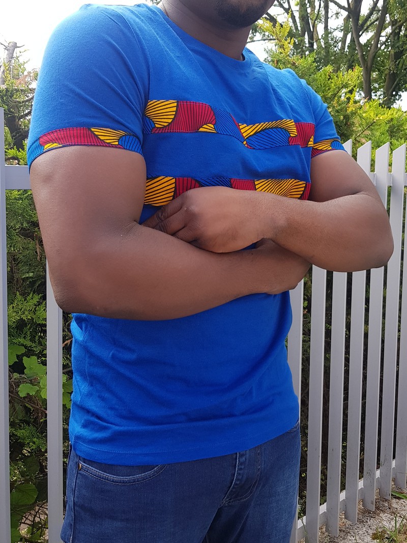 Très beau t-shirt fait main avec une touche de wax pour égayer vos tenues cet été !