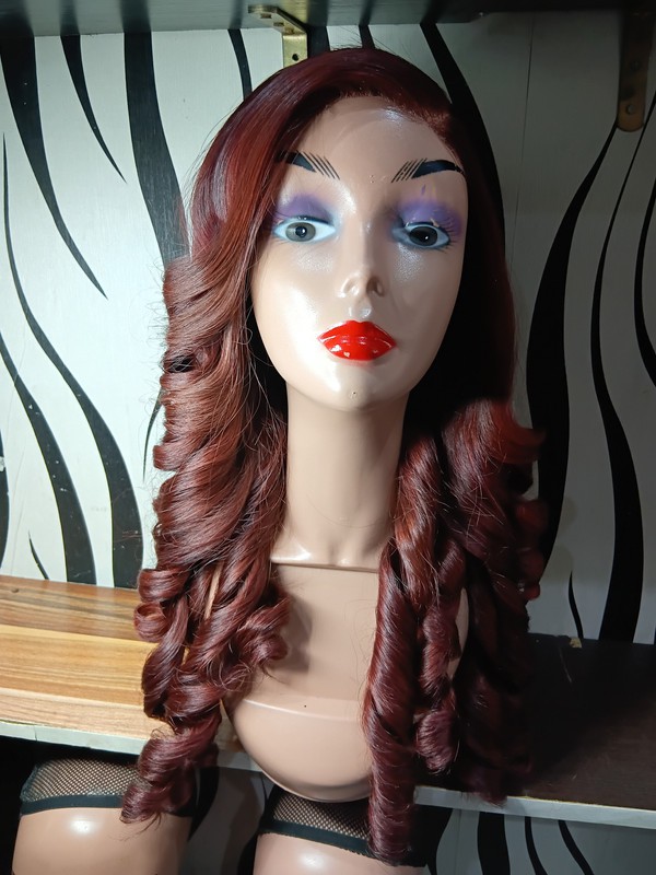 Beauté et Cheveux Cheveux Perruques Couleur: Bordeaux Taille de la tête: Moyenne Style de perruque: Cheveux Ondulés Longueur de cheveux: Long Matière de cheveux: Mèche Humaine