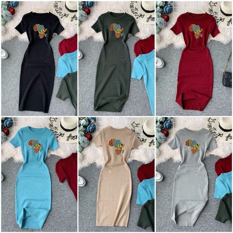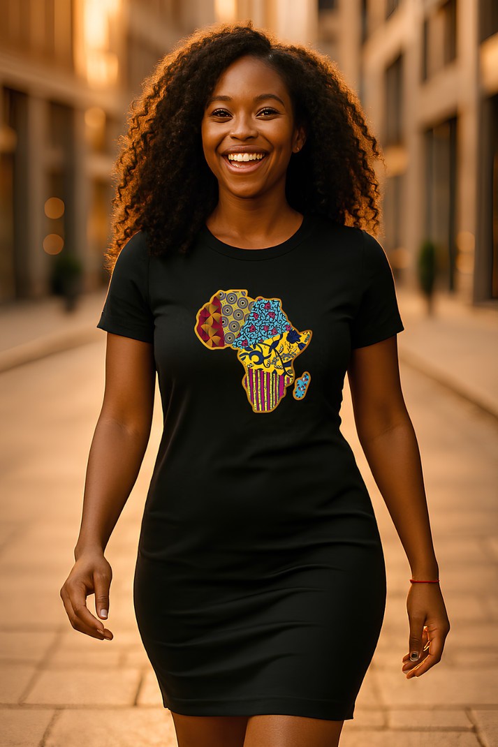 This bodycon printed dress with an original design showing the map of Africa allows you to combine style and comfort.