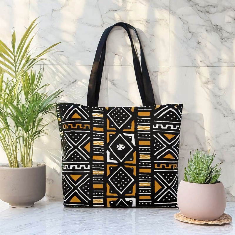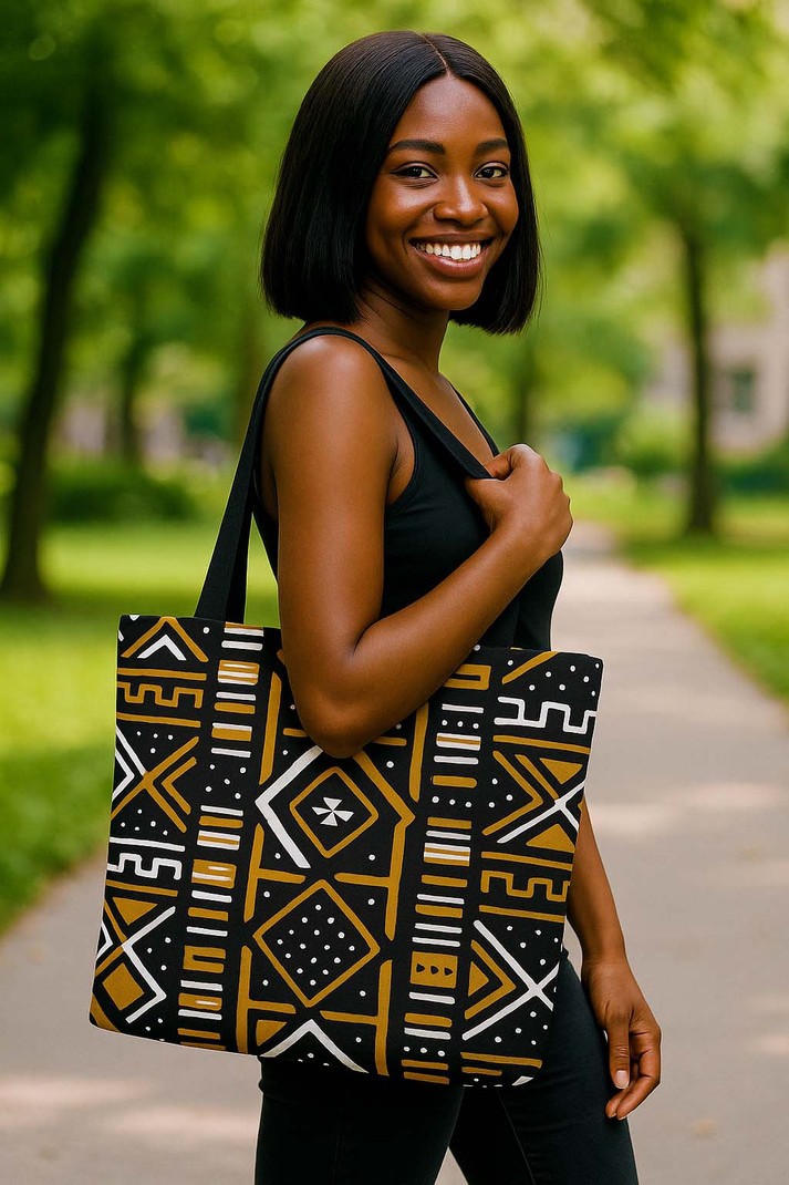 Take on the world with our Bogolan African American Tote Bags! With a traditional fashion design, these bags are not only stylish but also functional with a large capacity. Make a statement and stand out from the crowd with these bold and unique bags.