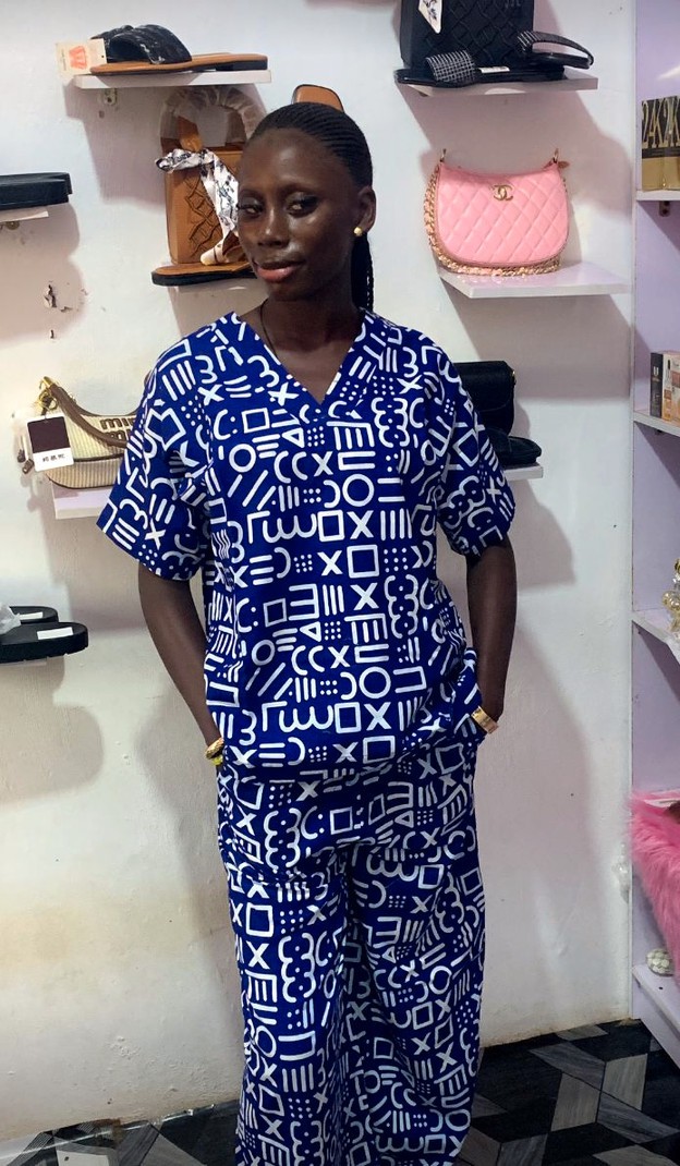 Femme Ensemble 2 pièces Couleur: Bleu Genre: Pour Elle Matière: Bogolan