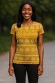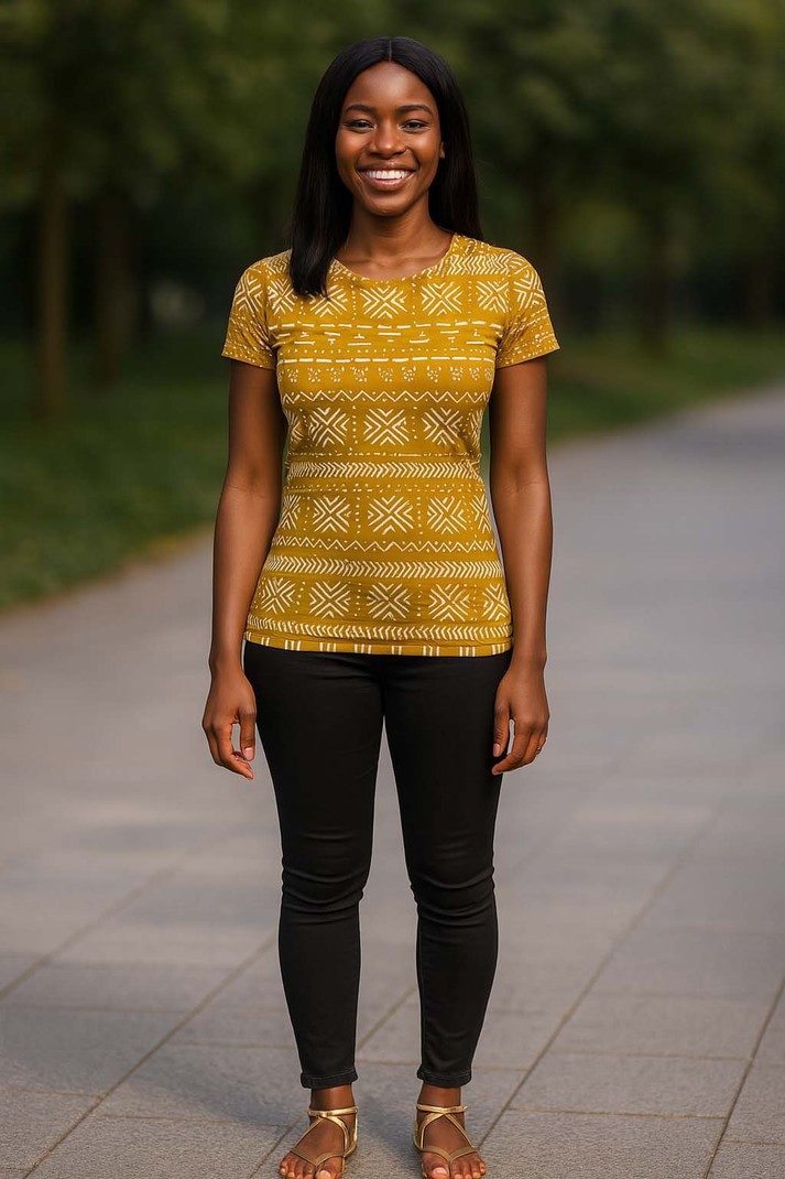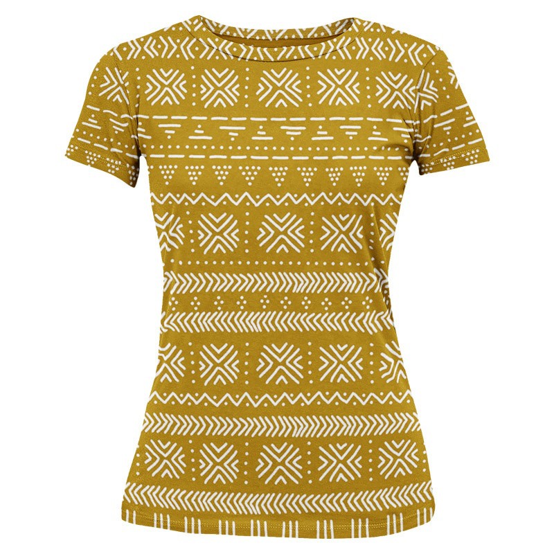 This Afrocentric Print Women T-shirt Gold is a stylish and unique addition to any wardrobe. With its eye-catching design and comfortable fit, it is perfect for expressing your personal style while celebrating the beauty of African culture. Made with high-quality materials, it is sure to become a staple in your collection.