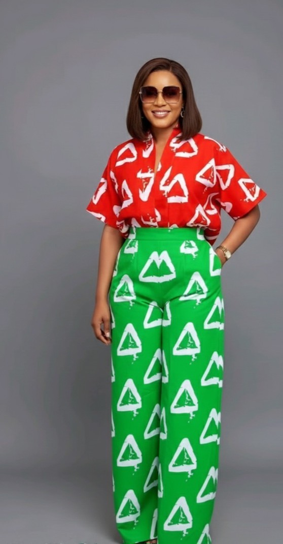 Bold Red and Green Patterned Outfit