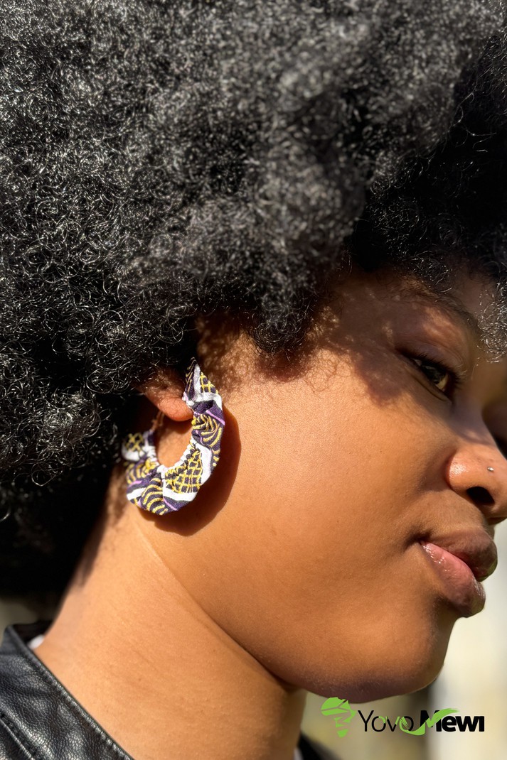 Apportez une touche d’originalité et d’élégance à vos tenues avec ces magnifiques boucles d’oreilles créoles habillées de tissu wax.