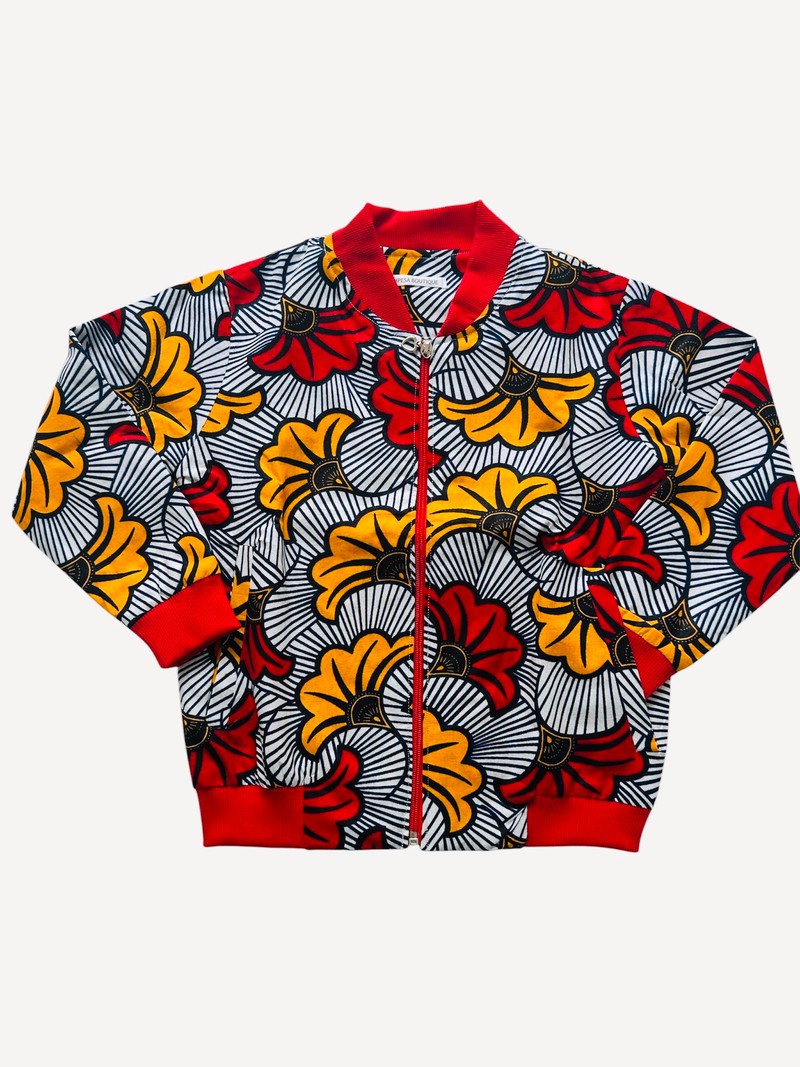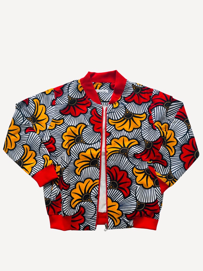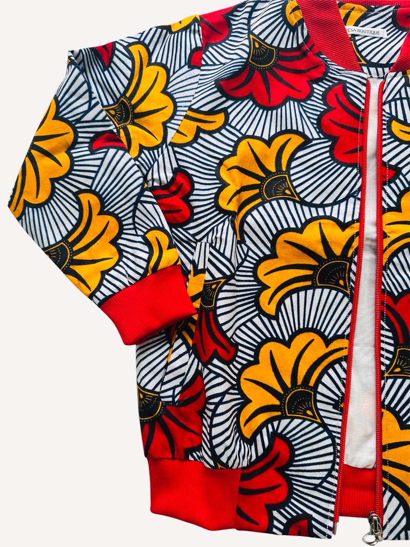 BOMBER MIXTE ENFANT - MOTIF FLEURI EN TISSU WAX / SPÉCIAL MARIAGE & CÉRÉMONIES