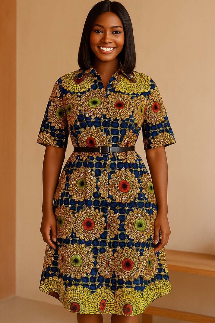 Experience the perfect blend of tradition and contemporary style with the Button-Down Ankara Shirt Dress. Featuring a classic fit that flatters every figure, this dress showcases vibrant Ankara patterns for a bold, modern look. Its versatile button-down design makes it ideal for any occasion, offering effortless elegance and comfort all day long. Make a statement with a dress that celebrates your unique style.