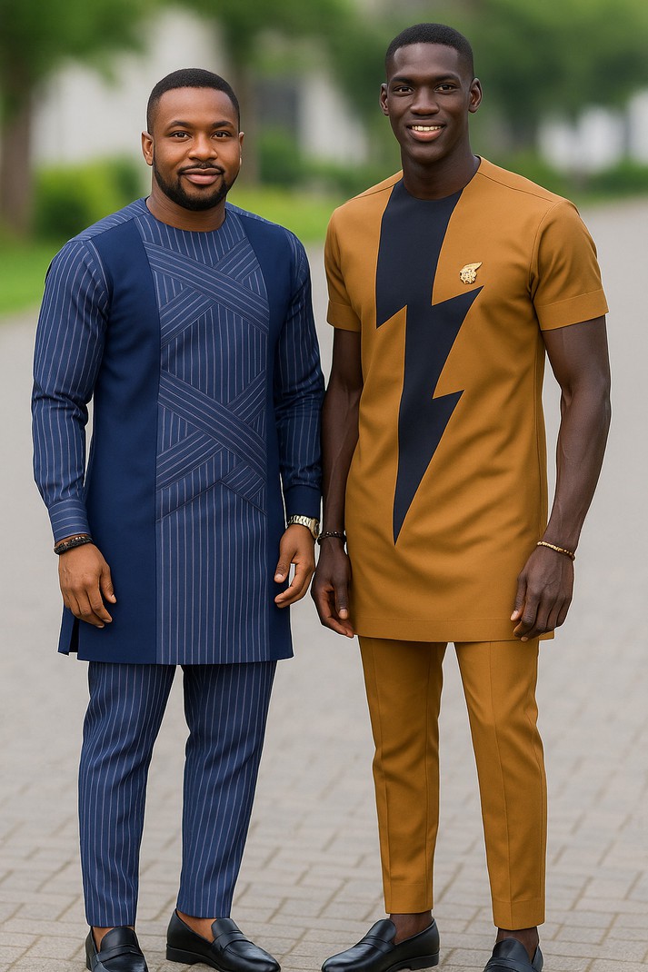 Get these two elegant kaftans together in one order! Once you buy, you receive both stylish outfits complete with matching hats. Perfect for all occasions, designed for comfort and class. Available in all sizes with fast delivery. Order now and own these beautiful kaftans today!