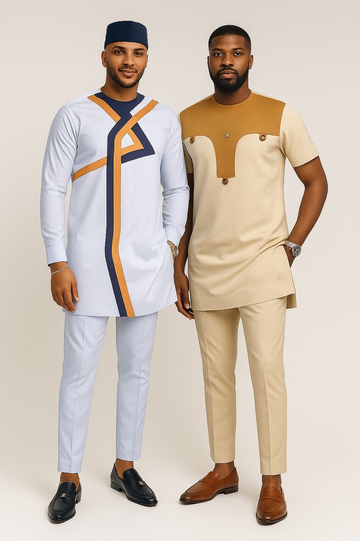 Get these two elegant kaftans together in one order! Once you buy, you receive both stylish outfits complete with matching hats. Perfect for all occasions, designed for comfort and class. Available in all sizes with fast delivery. Order now and own these beautiful kaftans today!