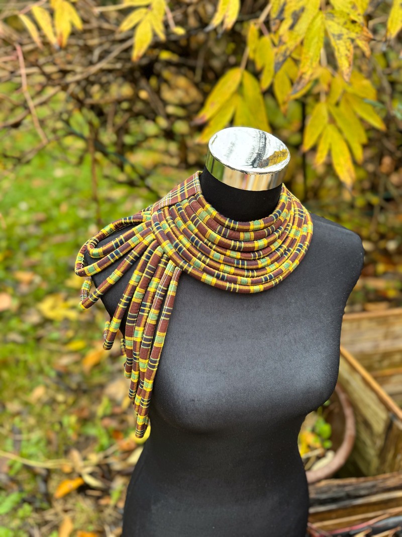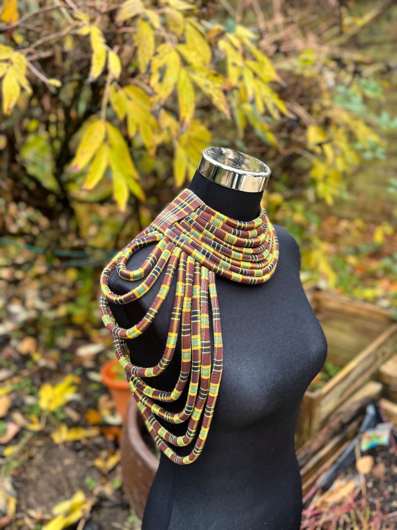 Le collier Reine Madras incarne la noblesse des traditions et la fierté des racines. Son épaulette délicatement façonnée à partir de bandes de tissu madras se pose sur votre épaule comme un drapé royal. Chaque mouvement révèle l’éclat d’une reine contemporaine — fière, gracieuse et souveraine. Porter Reine Madras, c’est affirmer sa lignée : celle des femmes puissantes, lumineuses et ancrées dans leur héritage. Une parure qui célèbre la majesté au féminin, entre art, culture et élégance intemporelle. ✨👑 ✨ Ce qu’on aime : • Des couleurs pleines d’énergie, directement inspirées des Antilles et de l’Afrique. • Un look entre tradition et audace, parfait pour un événement, un shooting, ou juste parce que tu veux briller aujourd’hui (et tu as bien raison). ⸻ 🧵 Détails techniques : • Matière : 100 % coton madras • Fait main avec soin et amour, comme toujours • Taille : convient à toutes les morphologies • Couleurs : Multicolore (chaque pièce est unique selon le madras utilisé) • Entretien : Lavage délicat à la main recommandé ⸻ 💃🏾 À porter sur une tenue simple pour la laisser parler. Ou ose le total look coloré, parce que ta lumière ne demande pas la permission.