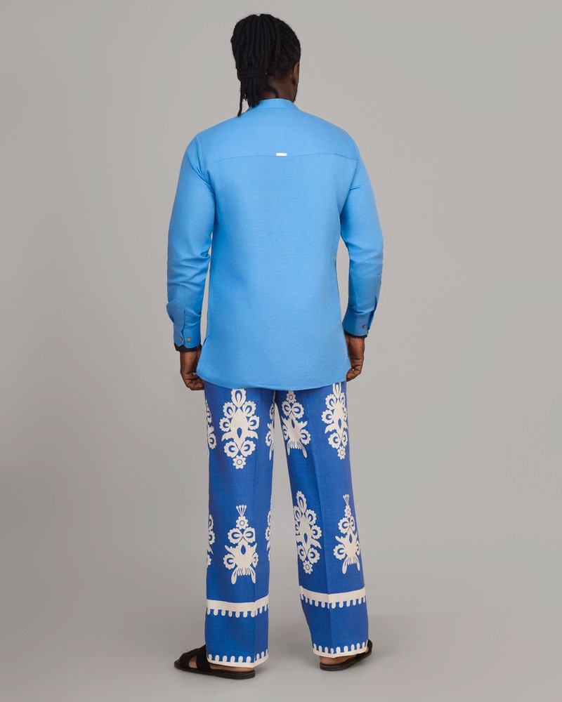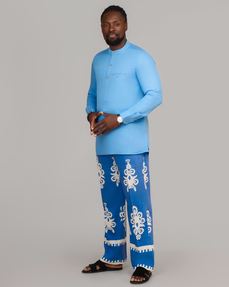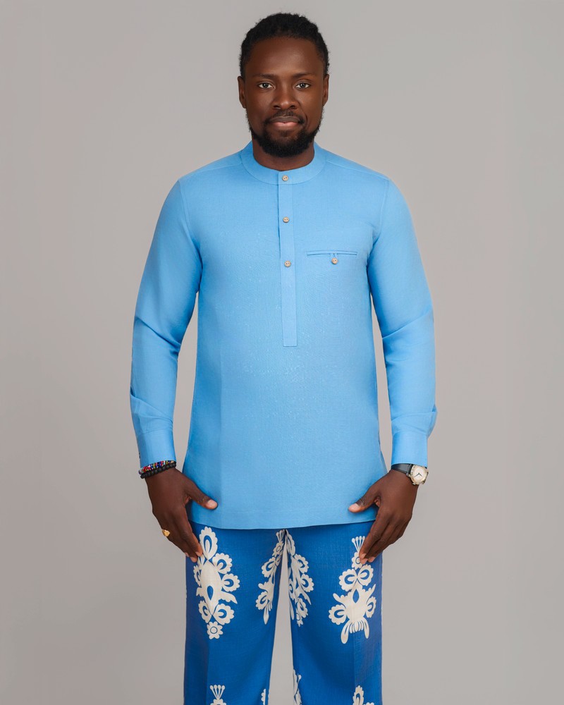Inspirée de la sérénité et de la puissance du bleu, Le Bleu d’Oshun est une chemise qui allie grâce, assurance et modernité. Avec sa coupe épurée et son col officier raffiné, cette pièce signée XƆVI incarne la maîtrise du style africain contemporain — entre élégance traditionnelle et minimalisme cosmopolite.