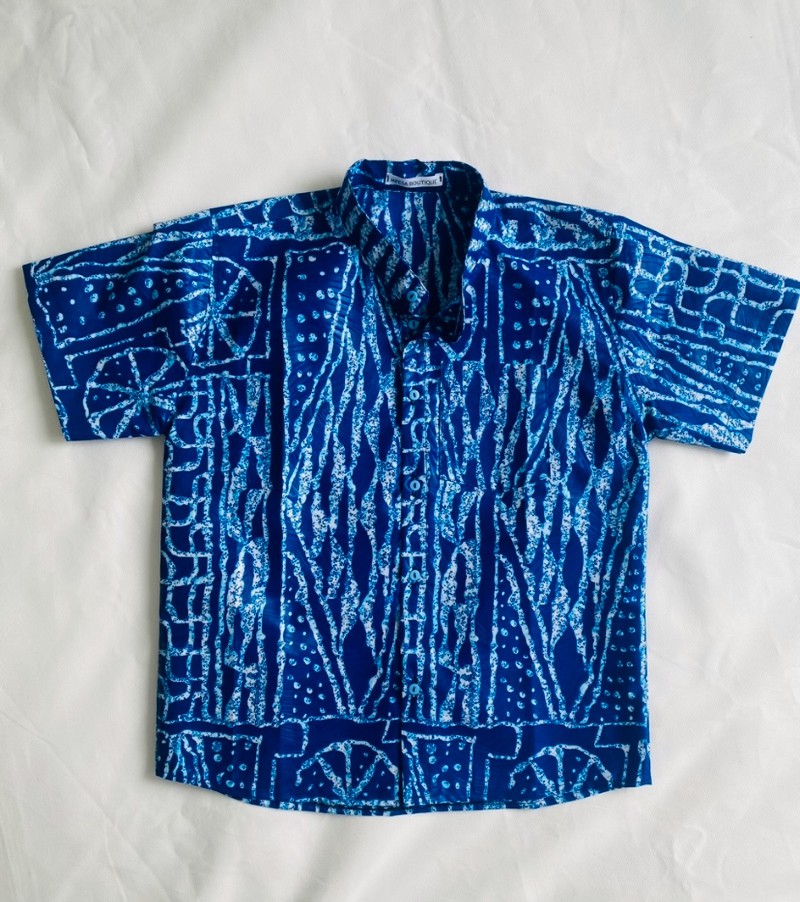 LA CHEMISE NDOP-NOTRE CHEMISE EN WAX À COL MAO. Laissez-vous séduire par notre chemise wax NDOP à col mao, une pièce unique qui allie tradition et modernité. Inspirée du célèbre tissu NDOP d’Afrique Centrale plus précisément du Cameroun , cette chemise est parfaite pour habiller vos enfants avec style , tout en leur transmettant un héritage culturel fort. Détails du produit: -Matière 100% coton wax ( motifs NDOP) -Coloris bleu indigo dominant plus motifs traditionnels -Entretien : Lavage à 30°C , repassage à l’envers , ne pas sécher en machine Pourquoi on l’aime? -Une pièce unique originale -Facile à assortir pour des looks chic ou décontractés -Idéale pour les événements, cérémonies ou le quotidien. Offrez à votre enfant le style et la culture avec cette chemise unique!