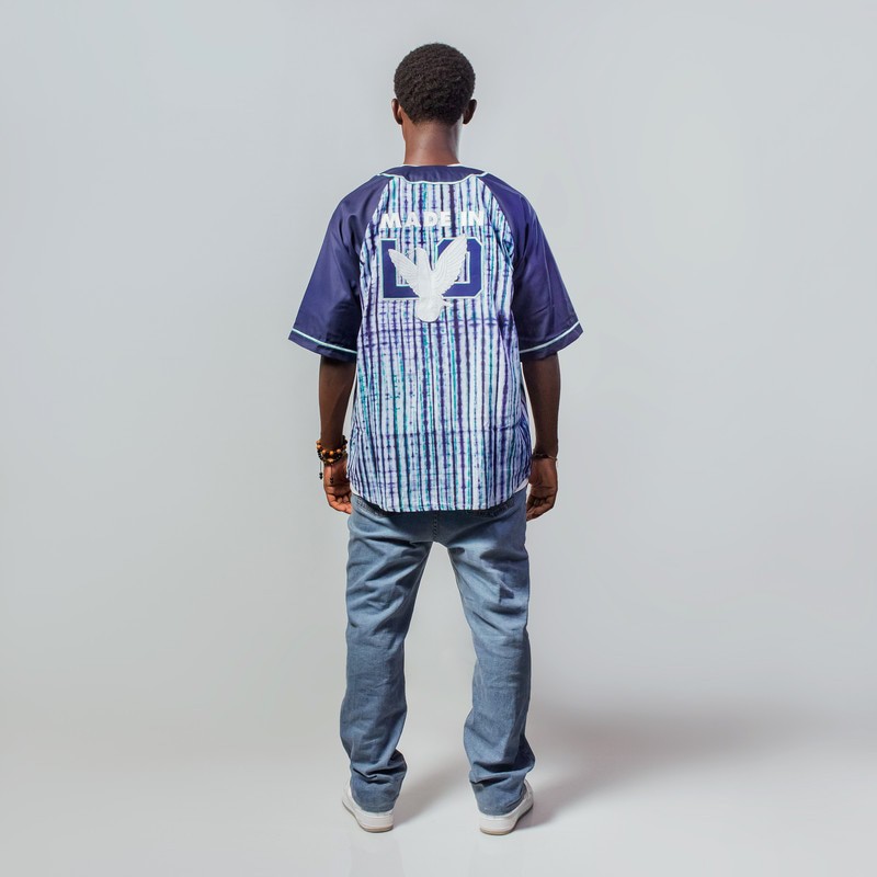 Inspirée des coupes iconiques des maillots de baseball, cette chemise en batik artisanal se distingue par son col ouvert et sa coupe légèrement oversize, idéale pour un look à la fois décontracté et raffiné. Le tissu provient de Capsules Textile, une entreprise locale engagée dans la valorisation du textile africain, garantissant ainsi une qualité et une authenticité inégalées.