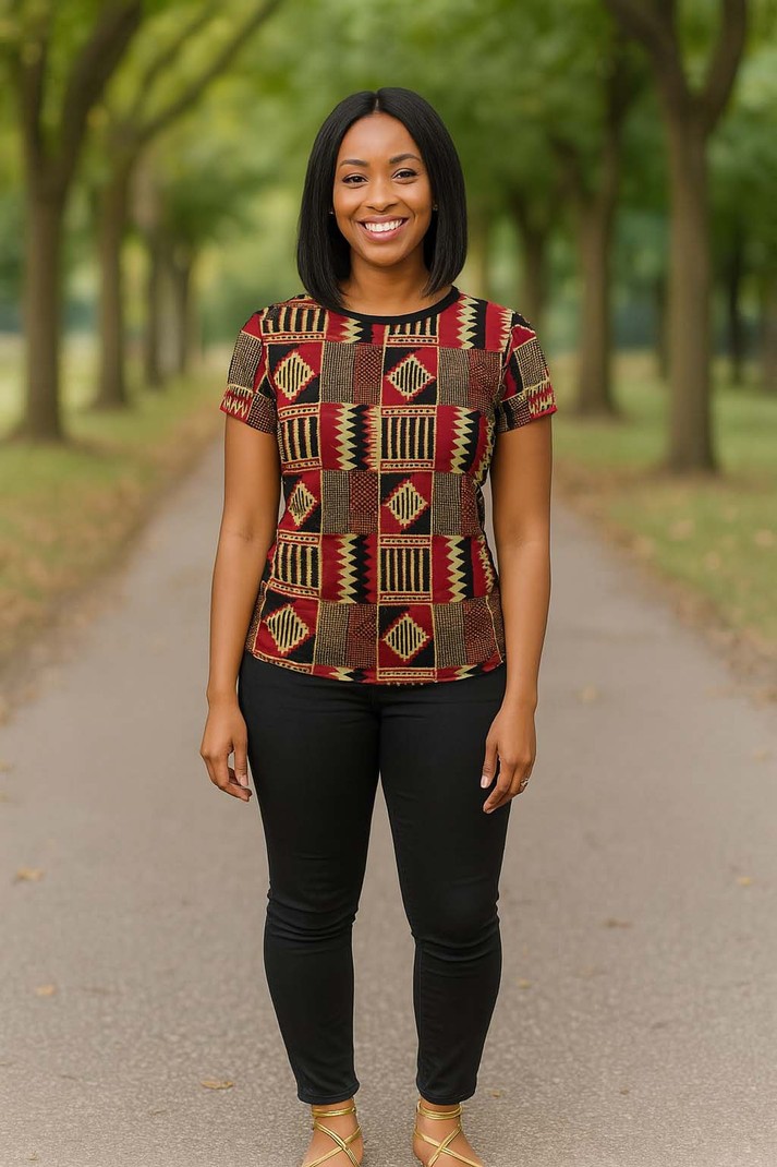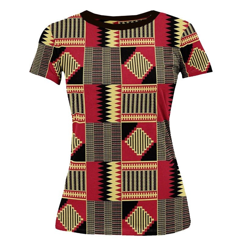 Make a bold statement with our new African Kente Print Women T-shirt. Featuring a relaxed fit for a chic and comfortable look. Shop now for laid-back elegance!