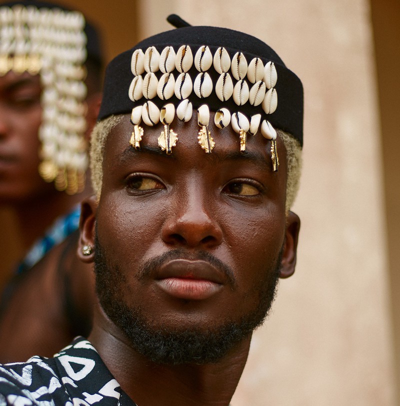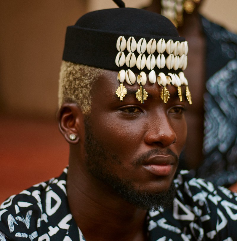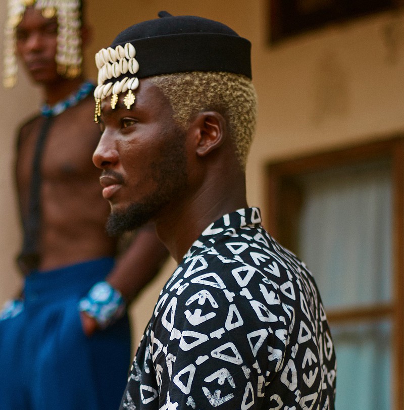 Ne pas frotter directement les cauris ou les poids baoulé. Nettoyer principalement le tissu.