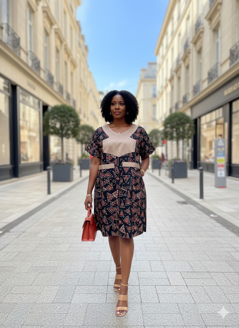 Femme Robes Robes courtes name_fr: Lâche name_fr: Multicolore name_fr: Pour Elle name_fr: Wax