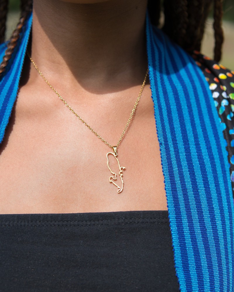 Affichez fièrement vos racines et votre amour avec ce collier pendentif en forme de la Martinique, sublimé par un cœur gravé au centre.