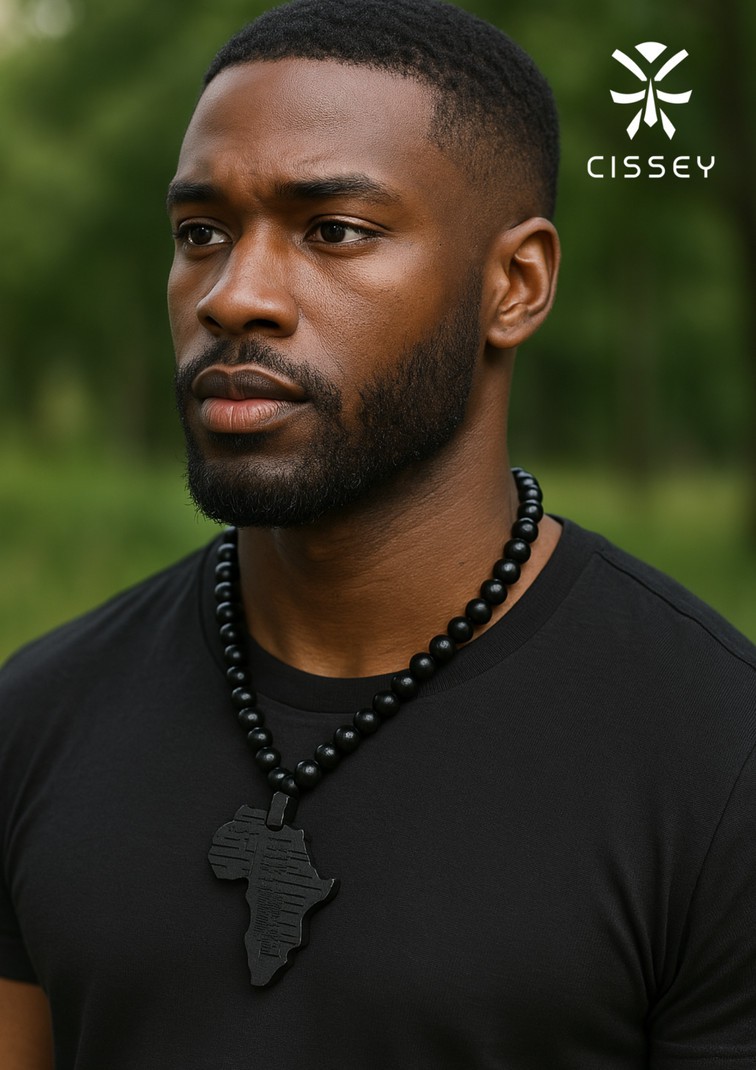 Unisex African Black Wooden Necklace – Elegance & Tradition