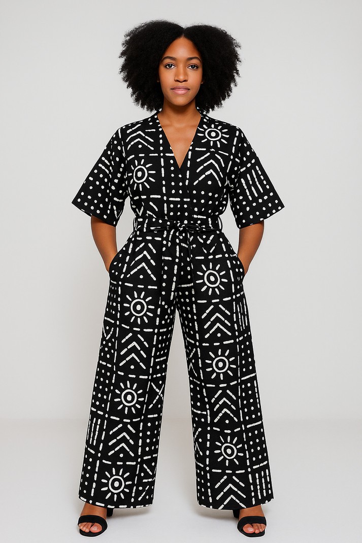 Combinaison cache cœur Ankara noir bogolan. Manche courte,